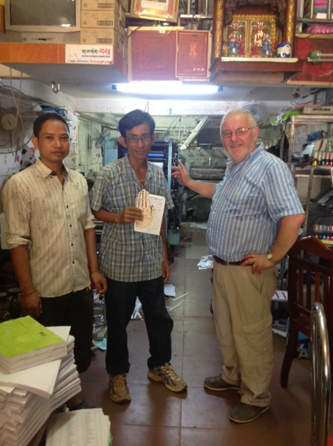 - Peter takes Pastor Kundate to the printers. He want to sow seeds into the ministry in Cambodia. The Lord’s Prayer ” hand tracts” have brought. Such intrigue with those who receive and those you will use them to teach English and the Gospel. It is going to be great to have them in English & Cambodian in Siem Reep.