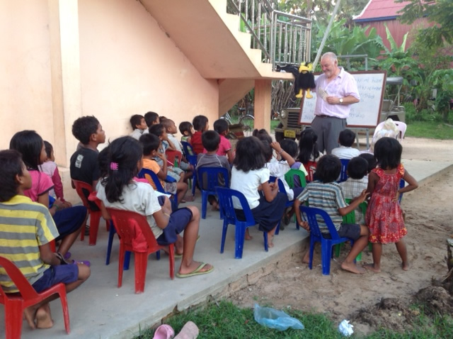 I can see that God’s plan carried a wider vision, which I am now seeing. I can see the impact it has had on these young leaders here in Cambodia. ‘Joe Crow’, my glove puppet, has made a real impact teaching The Lord’s Prayer, and they love the ‘Praying Hands’ Tract.