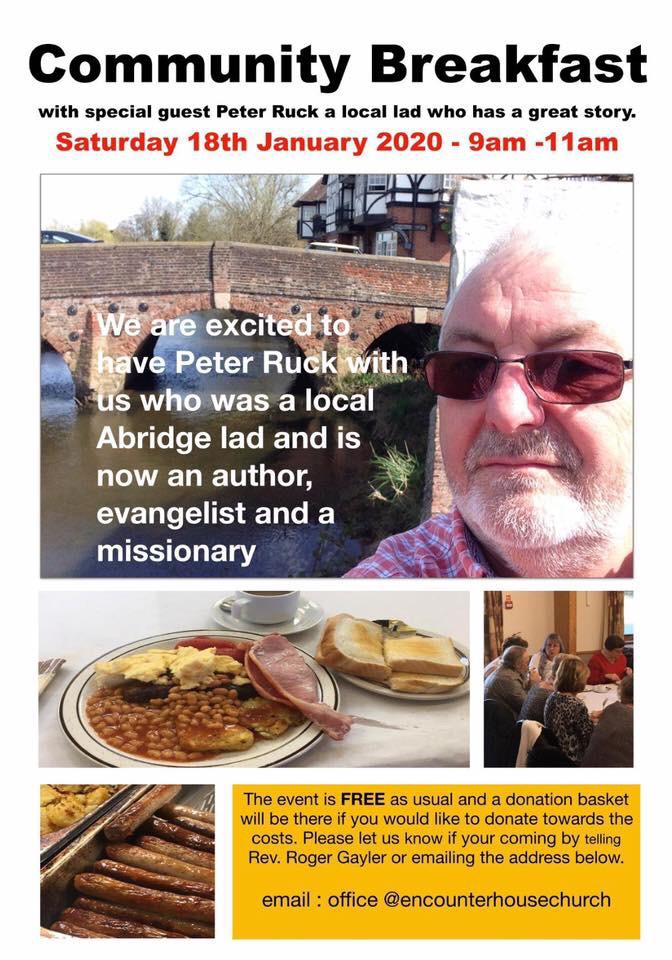 I will be ministering in the Village Hall the weekend of the 18th &19th January. The Saturday morning is a Community Breakfast. The Saturday night is called Songs & Stories were Peter Ruck will tell his story of “ A message that take a village boy around the World” It’s exciting to be part of the celebration of the 900 years serving the community with Abridge Free Church, Community Church & St Marys CofE Lambourne.info@zealoutreach