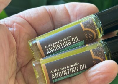 Anoint with oil. The biblical significance of oil represents the Holy Spirit, God’s blessings, consecration and divine empowerment.